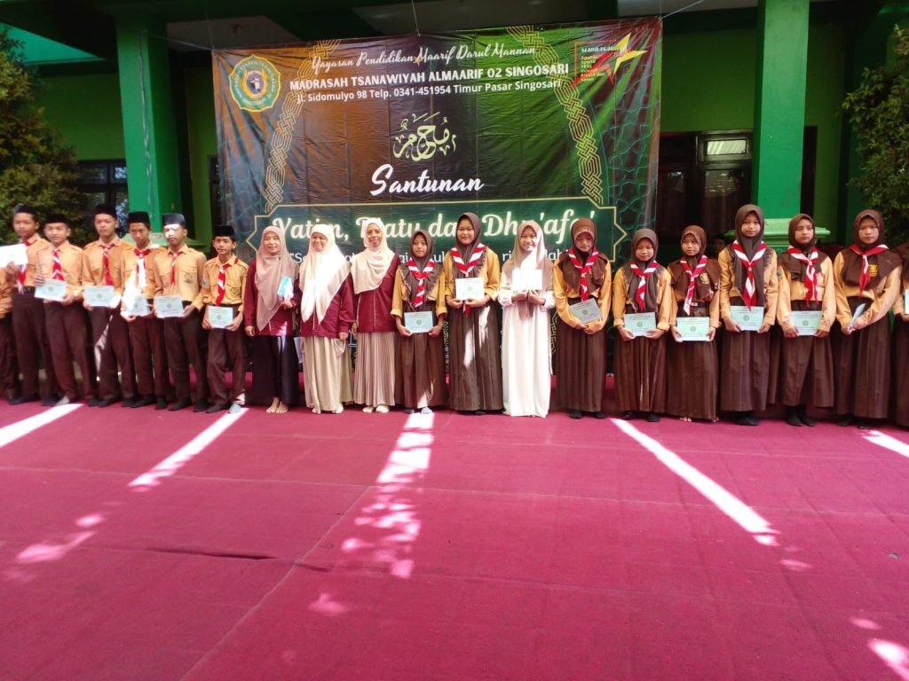 Santunan 10 Muharram 1445 H. kepada 110 Yatim, Piatu, dan Dhuafa di MTs Almaarif 02 Singosari menjadi bukti nyata dari nilai-nilai kepedulian dan solidaritas yang dijunjung tinggi dalam masyarakat. Dalam momen yang penuh berkah ini, sekolah tersebut menunjukkan perhatian yang tulus terhadap mereka yang membutuhkan. Santunan ini mencerminkan semangat berbagi dan empati yang merupakan bagian integral dari ajaran Islam.